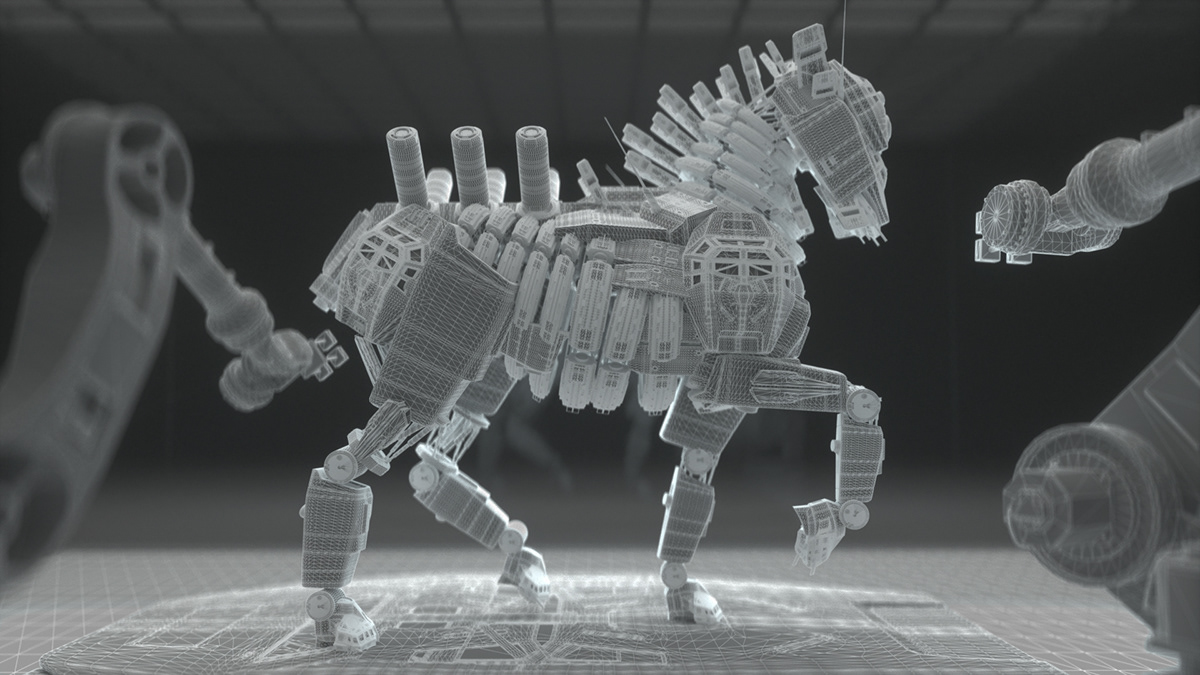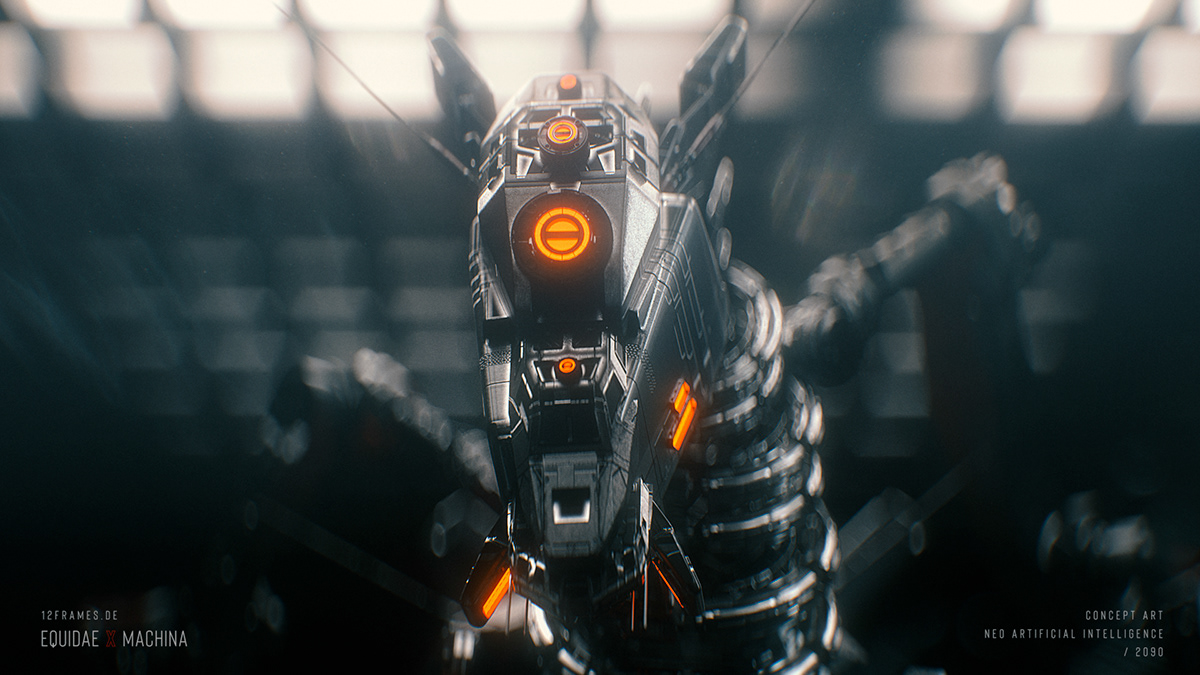 Какое животное придумает искусственный интеллект, если вся органическая жизнь исчезнет? Как он представит лошадь, если ни разу ее не видел? Новый концептуальный проект от 12FRAMES демонстрирует, как автономные фабрики воссоздали бы привычный органический мир и живых существ, воплощая их через дизайн в стиле киберпанк. Проект вдохновлен играми Horizon Zero Dawn, Blade Runner и Westworld. Конструкция фантастической лошади была воссоздана с помощью техники китбэшинга и доработана в программе After Effect.