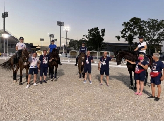 Ветеринарный врач сборной Евгений Горовой рассказывает, что в олимпийской деревне отличные условия для всадников и лошадей, удобные конюшни и качественные корма. Лошади благополучно перенесли перелёт и чувствуют хорошо, несмотря на высокую влажность и 33 градуса тепла.