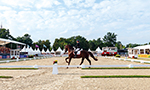 Внешне это выглядит, как обычный турнир по выездке: всадник, лошадь, площадка 20 х 60. Разницу замечаешь, взглянув на табло: вместо привычных имен и фамилий спортсменов – крупным шрифтом кличка, заводчик, племенной союз (порода), и уже потом имя, фамилия и национальная принадлежность. Которая,
