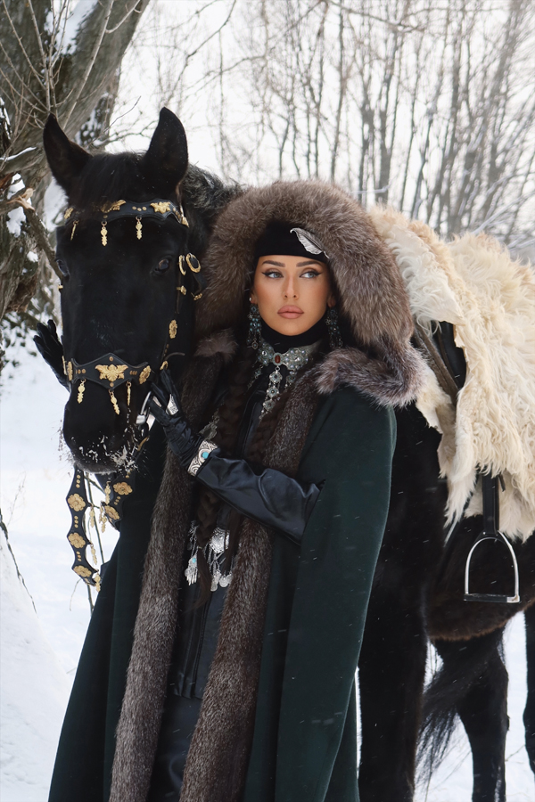 Нам хотелось создать этнический образ с башкирскими элементами, поэтому в костюме появились красивые серебряные украшения, мех, тюбетейка с национальным орнаментом. Для нас было важно, чтобы это выглядело органично и дополняло героиню, подчеркивало связь с культурой.