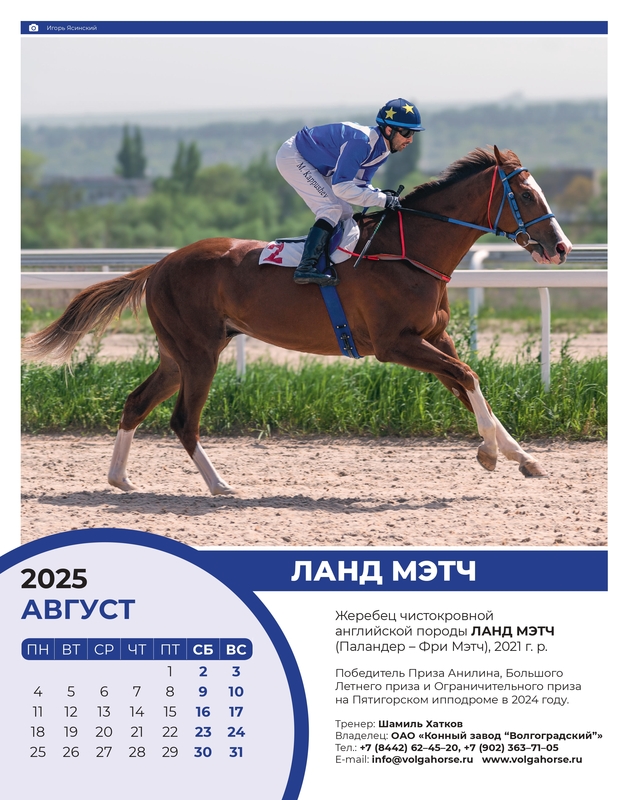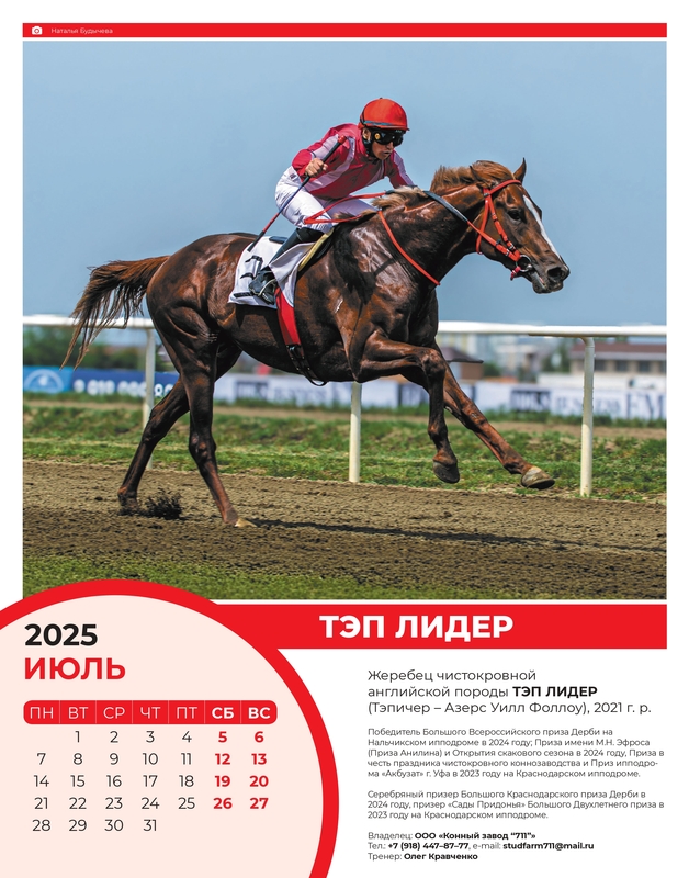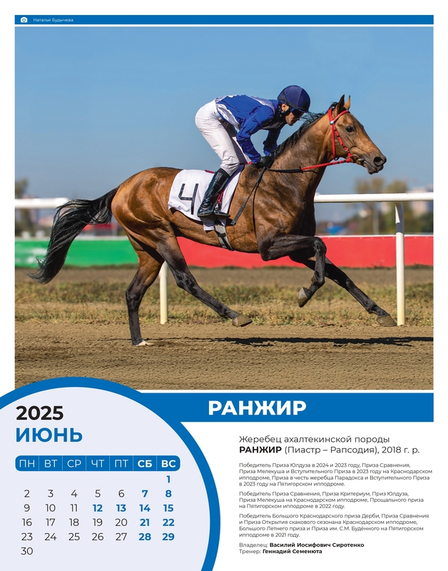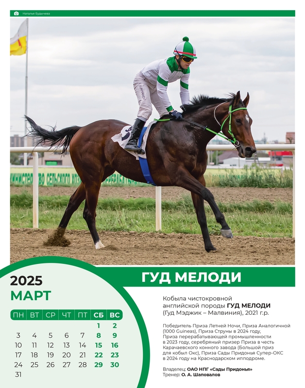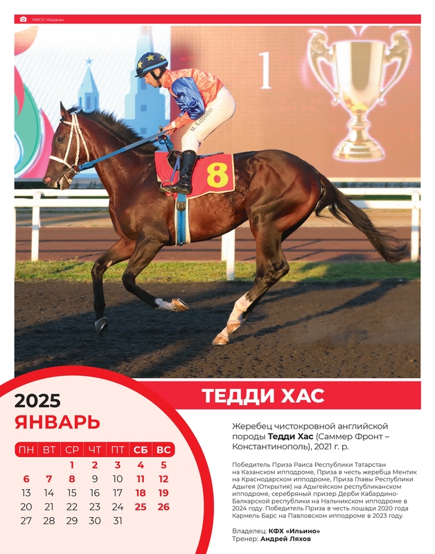 Календарь перекидной на 2025 год – "Золотой пьедестал. Ипподром". Формат А2, тираж 5 000 шт, 12 полос + обложка.
