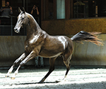 Внешне это выглядит, как обычный турнир по выездке: всадник, лошадь, площадка 20 х 60. Разницу замечаешь, взглянув на табло: вместо привычных имен и фамилий спортсменов – крупным шрифтом кличка, заводчик, племенной союз (порода), и уже потом имя, фамилия и национальная принадлежность. Которая,