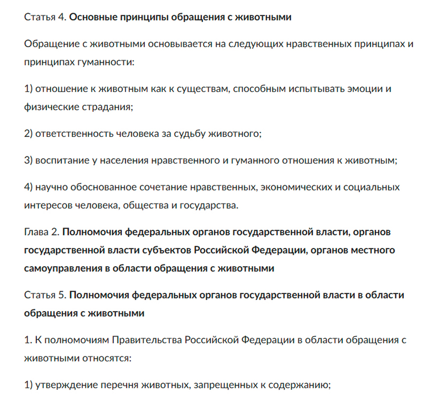 Выдержки из нормативных актов, касающихся жестокого обращения с животными: Федеральный закон № 498-ФЗ