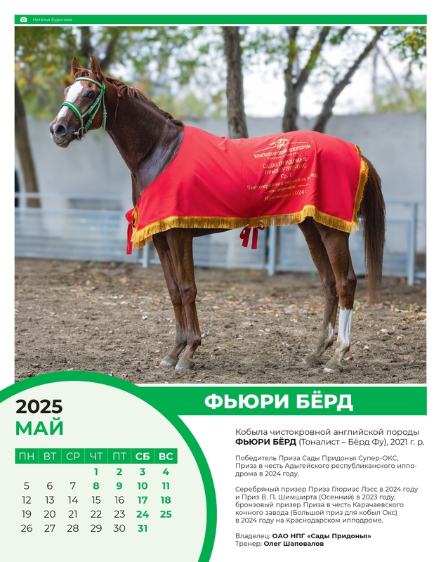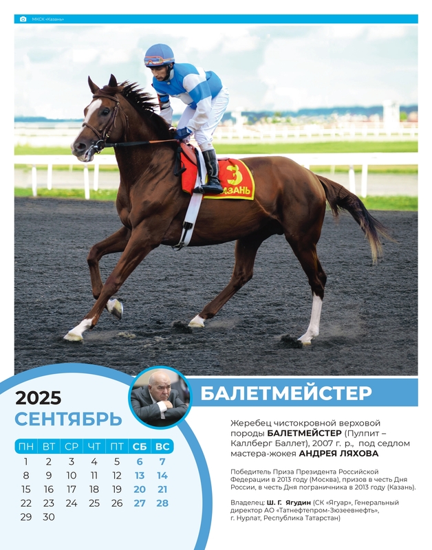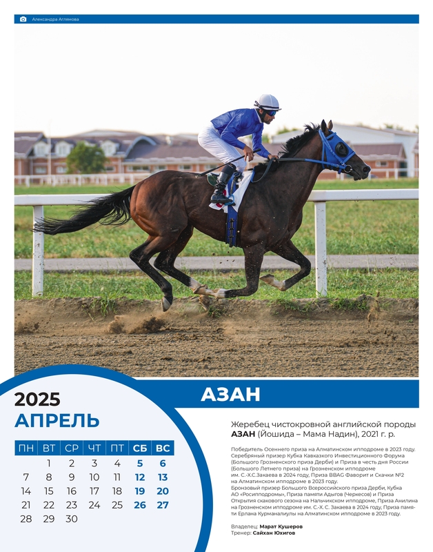 Календарь перекидной на 2025 год – "Золотой пьедестал. Ипподром". Формат А2, тираж 5 000 шт, 12 полос + обложка.